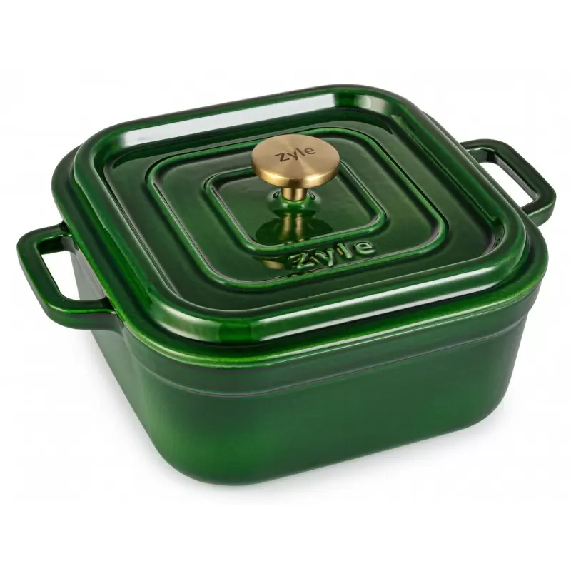 Keturkampis emaliuotas ketaus puodas Zyle ZY08GKI, 24 x 24 cm, 4,5 l, žalias