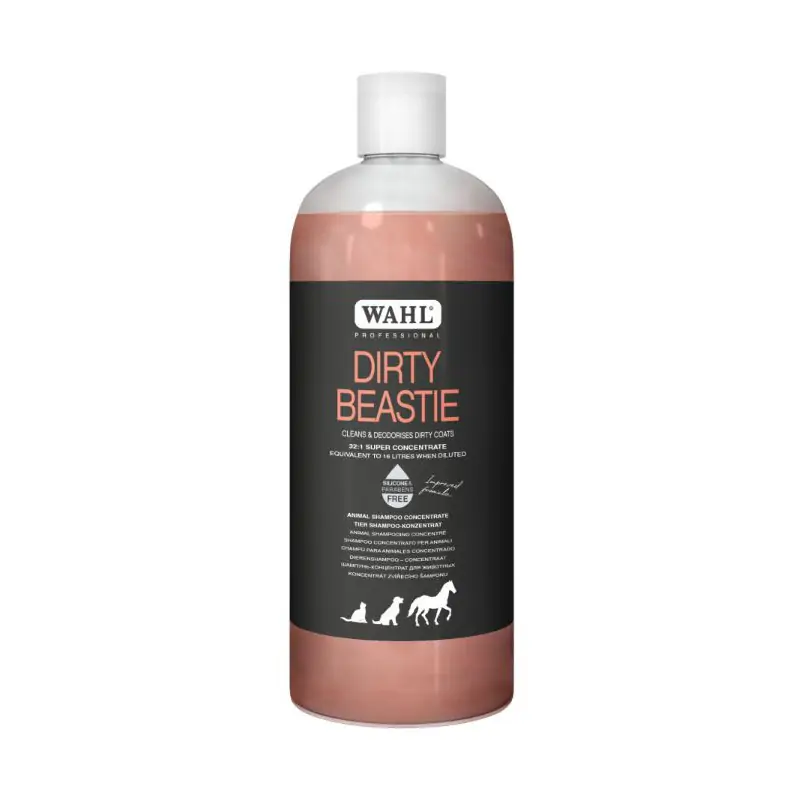 „Wahl Pro“ koncentruotas šampūnas gyvūnams švelniai valo ir dezodoruoja ypač nešvarų gyvūnų kailį. Priemonės sudėtyje yra natūralių persikų, kriaušių, pasiflorų ir kivių ekstraktų, kurie efektyviai valo purviną, tankų ar susiraizgiusį gyvūnų kailį ir pašalina iš jo nemalonius kvapus. Šis šampūnas gyvūnams yra koncentruotas. Atskiedus gaunama 16 litrų šampūno.