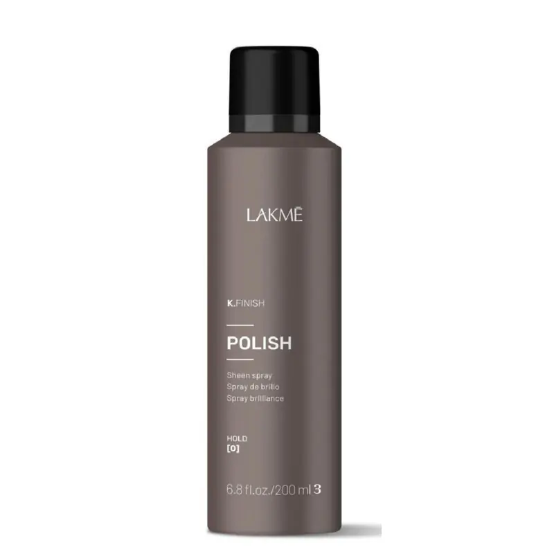 Lakme „K.FINISH POLISH Sheen Spray“ priemonė suteikia plaukams ilgai išliekantį spindesį, apsaugo nuo aplinkos drėgmės poveikio bei mažina nepageidaujamą plaukų pūtimąsi. Lengvos konsistencijos priemonė puikiai tinka visų tipų plaukams ir jų neapsunkina.