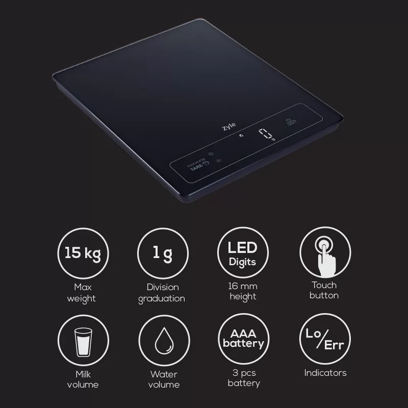 Virtuvinės svarstyklės „Zyle“ Jums padės ruošiant patiekalus, kurių gaminimui reikia naudoti ypač tikslias maisto produktų proporcijas. Šios „Zyle“ svarstyklės sveria 1 g tikslumu, taigi su jomis galėsite pasverti net ir nedidelius produktus. Jos puikiai tiks žmonėms, besirūpinantiems savo mityba. Su jomis taip pat galėsite paskaičiuoti pieno ar vandens tūrį, taigi tai bus itin naudinga neturint šalia matavimo puodelio.
